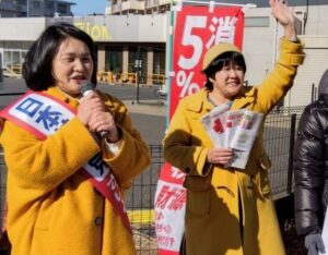 私は6時からは仲間と西白井駅で宣伝し、8時からは根本市議と一緒に宣伝カーで市内をめぐり、自民党が減税してきた超大金持ちと大企業に課税すれば、時給1700円、労働時間は7時間にできる、自民党政治をとめる1票は共産党に!と音で宣伝。
